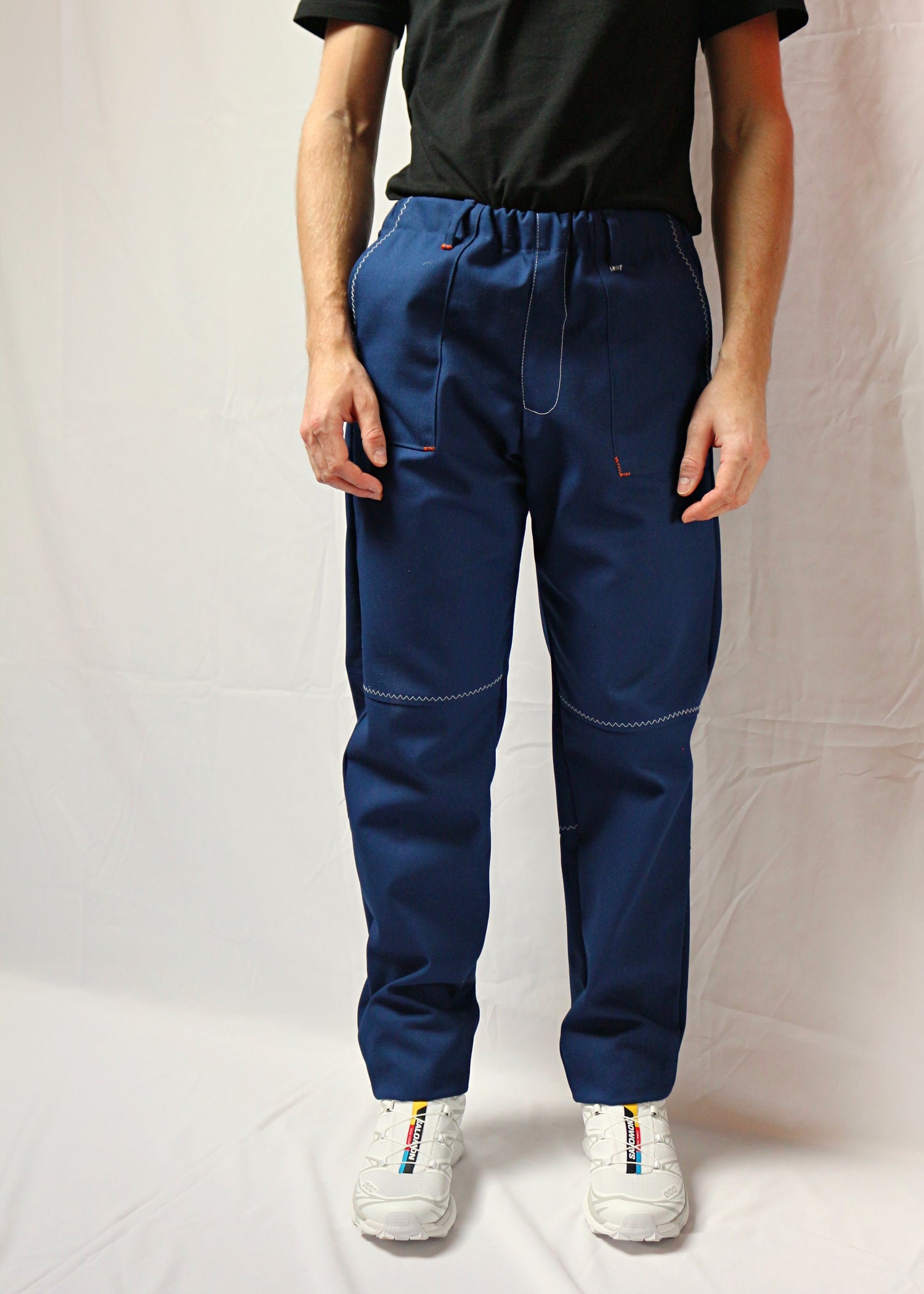 En confectionnant un même modèle en différentes largeurs mais aussi en trois longueurs, pour s'adapter plus précisément aux mesures et aux préférences de chacun.e. Les finitions des vêtements ne sont réalisées après essayage ou vérification des mesures pour un ajustement optimal.