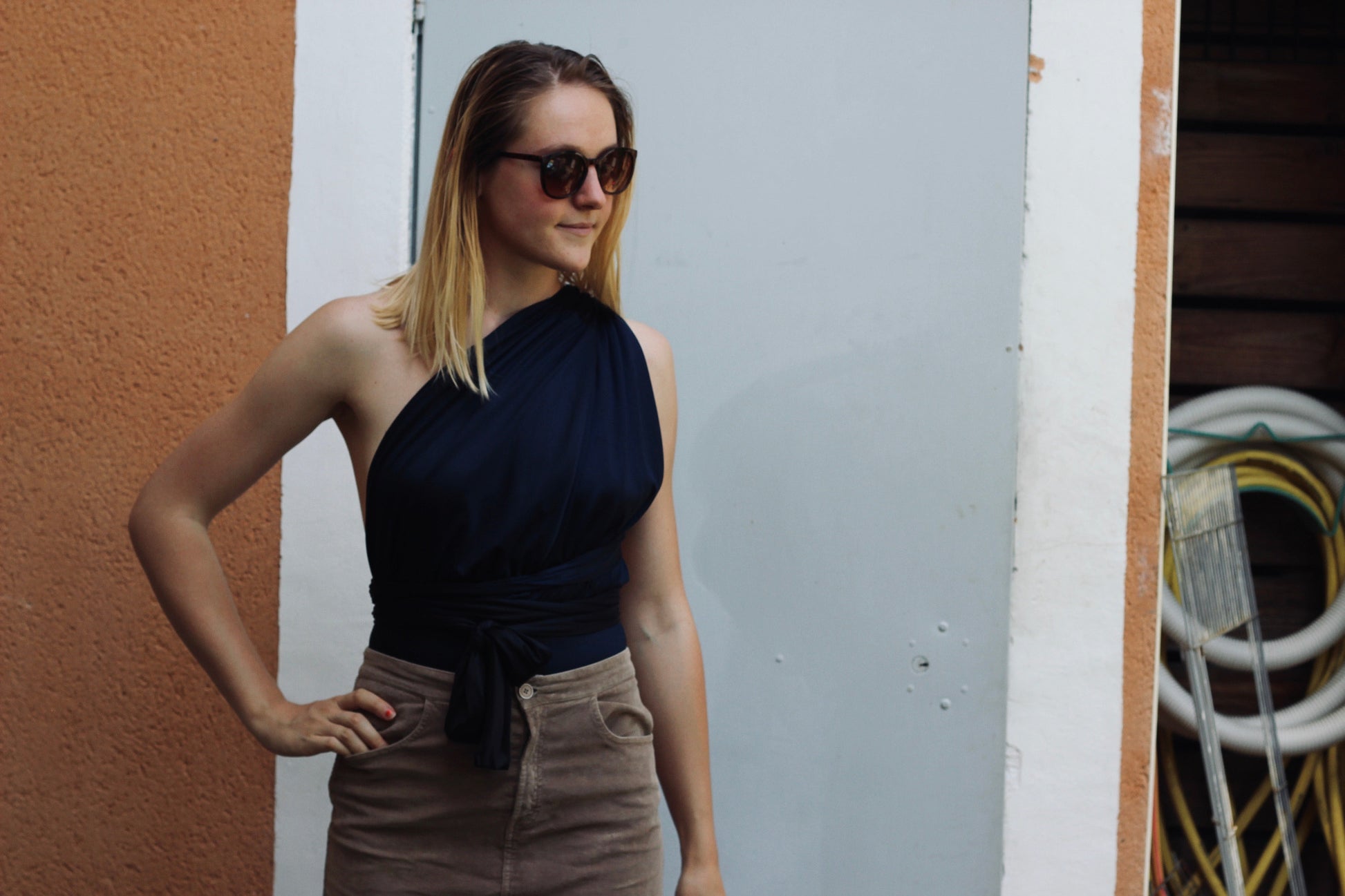 - Longues bretelles se croisant de différentes manières pour offrir plusieurs possibilités