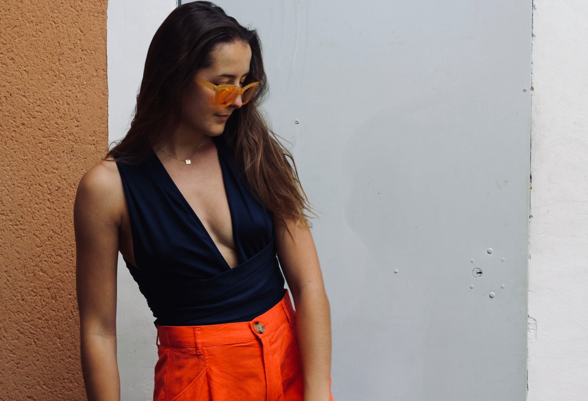 Le maillot de bain Navy vous accompagnera à la plage ou pourra être porté comme haut de soirée.